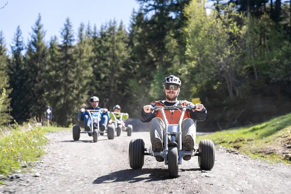 Drei Räder, ein einzigartiges Bergerlebnis und jede Menge Spaß! Auf einer rund 4,8 Kilometer langen Strecke mit etwa 550 Höhenmetern führt die Fahrt von der Bergstation der Gipfelbahn Fulseck hinunter bis zur Mittelstation.
